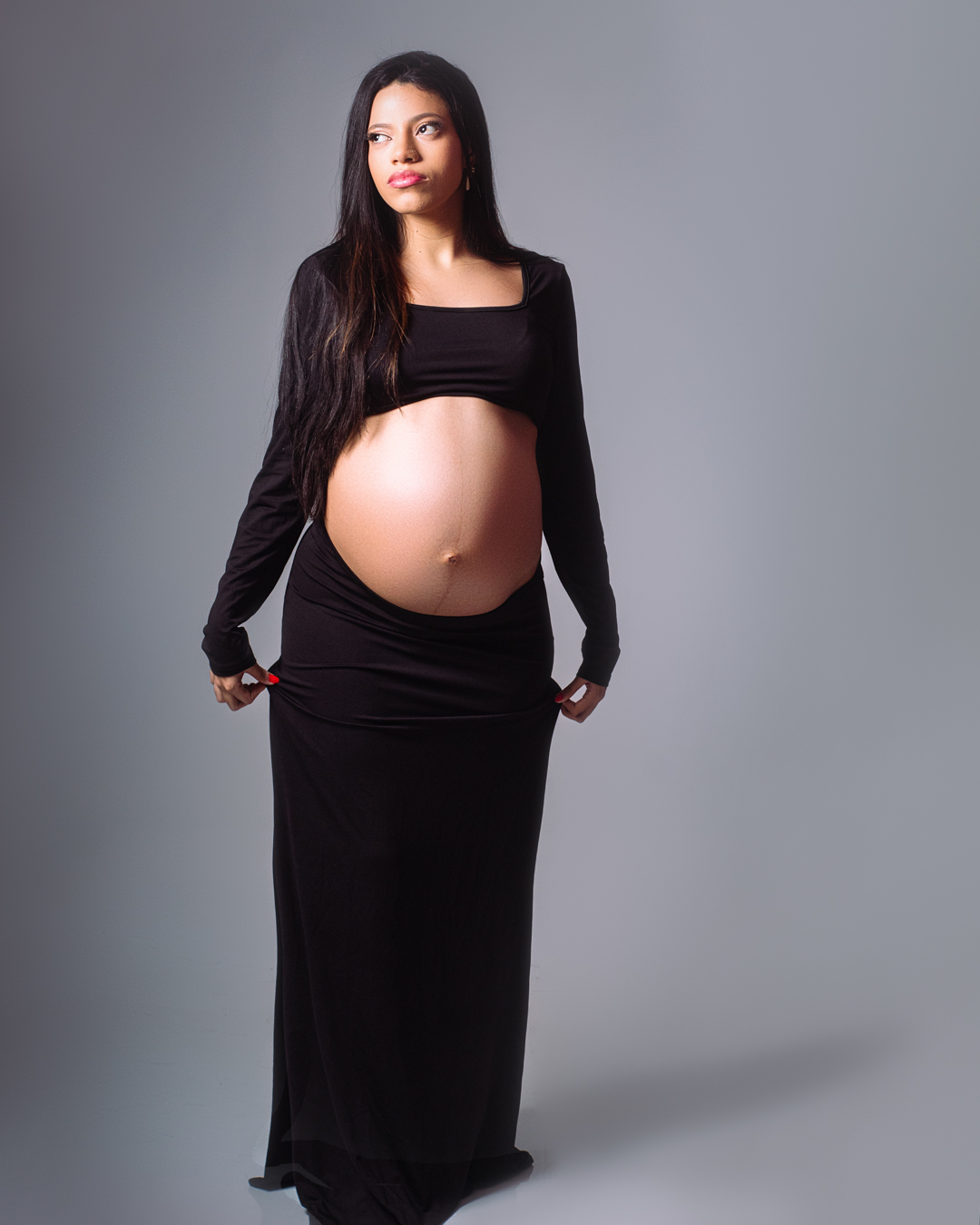 Seja em um estúdio profissional , as poses que valorizam o corpo da gestante , iluminação suave